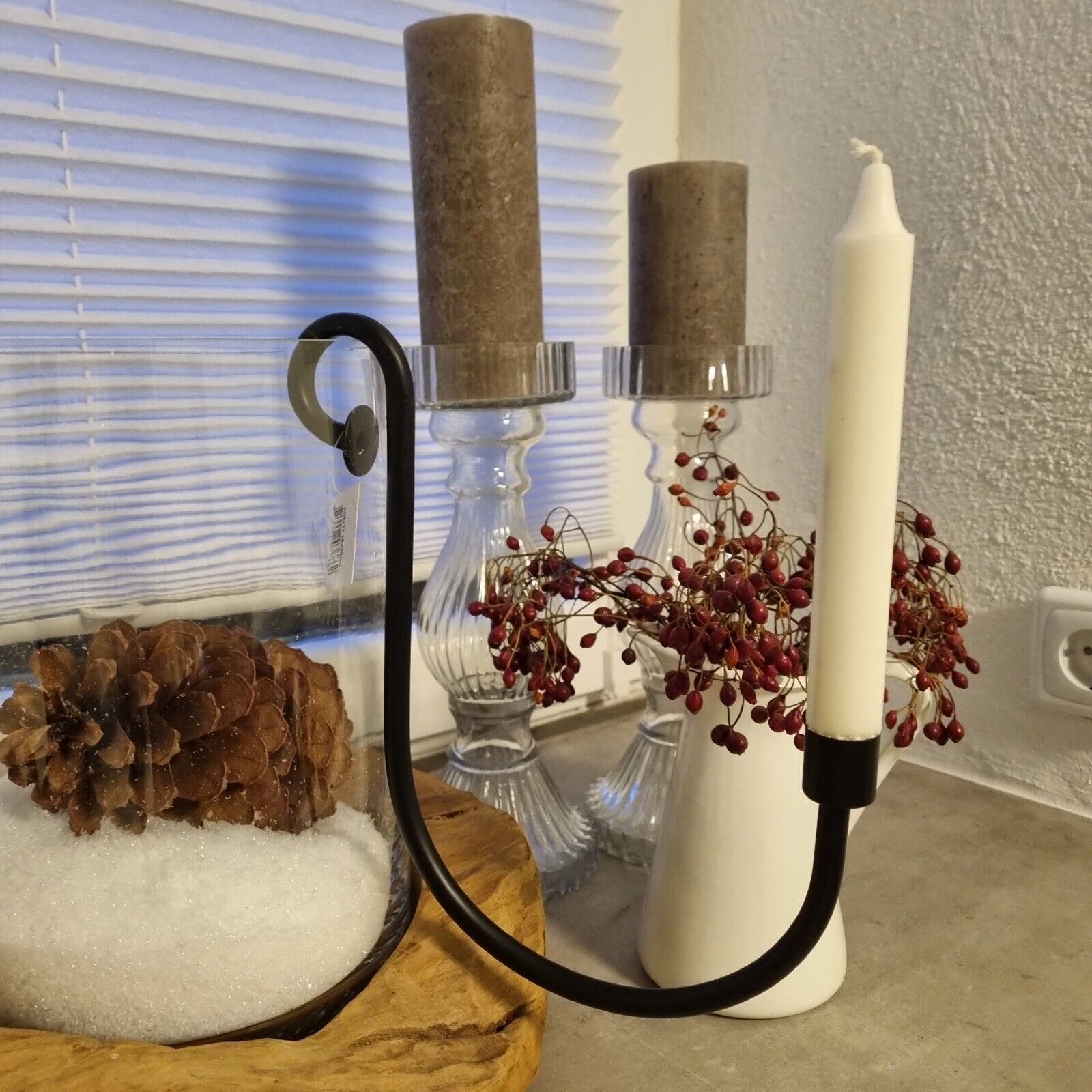 Gebogener Kerzenhalter schwarz Metall für Stabkerzen im Industrial Look. Der Kerzenhänger ist geeignet für Gläser oder Töpfe mit einer maximalen Dicke von 1cm.
