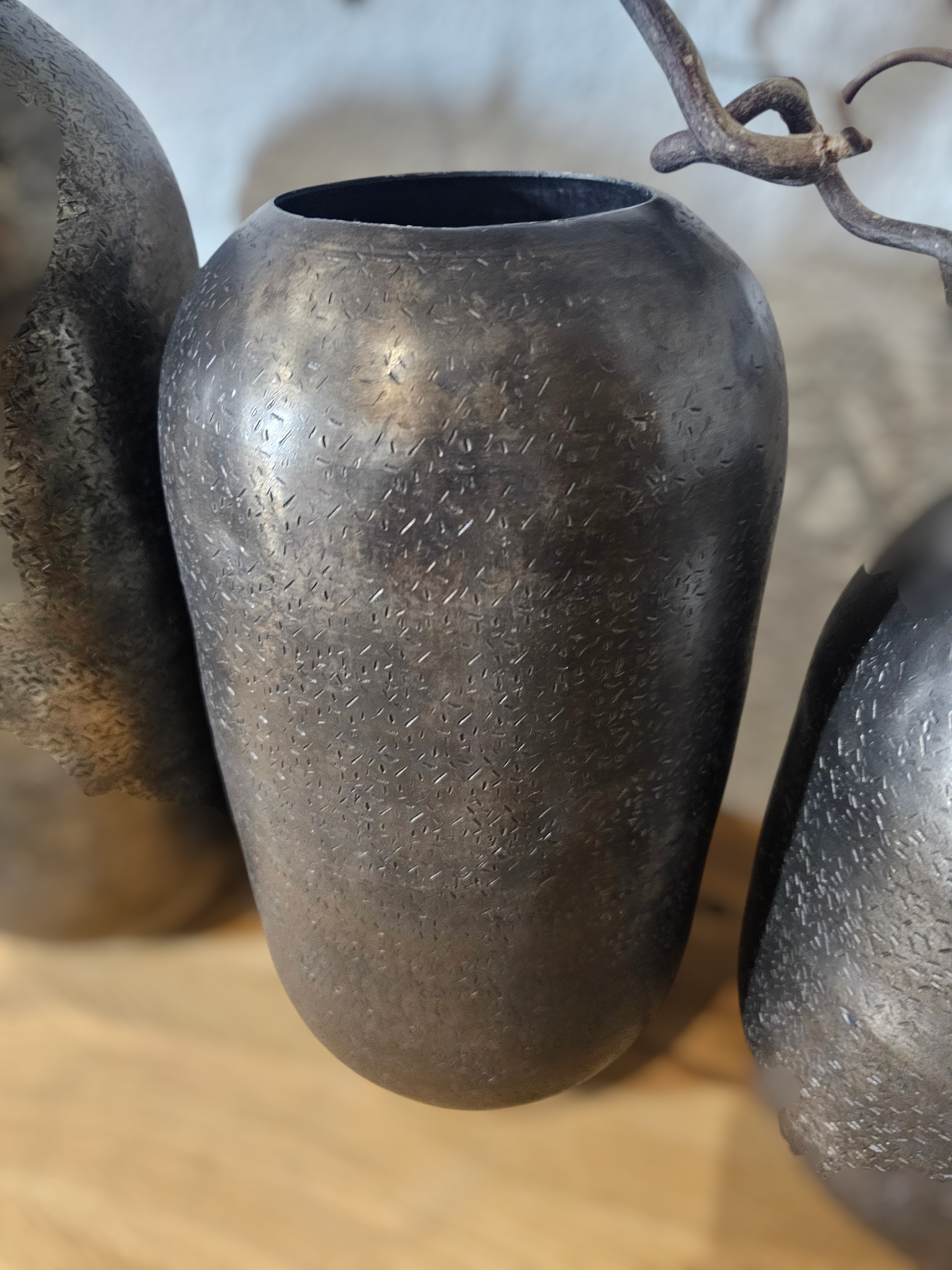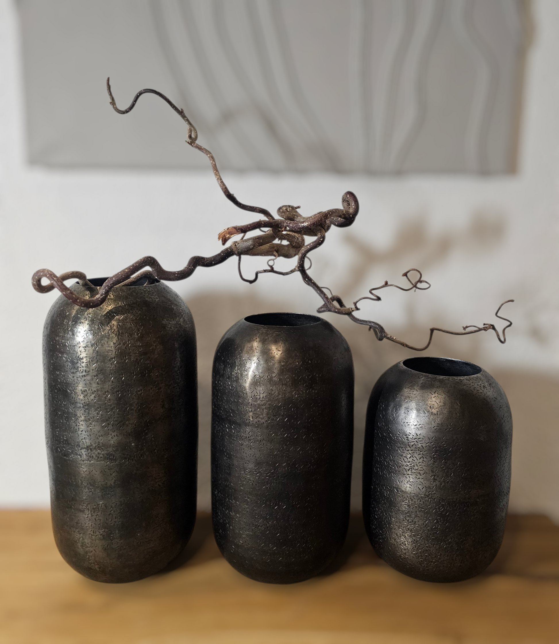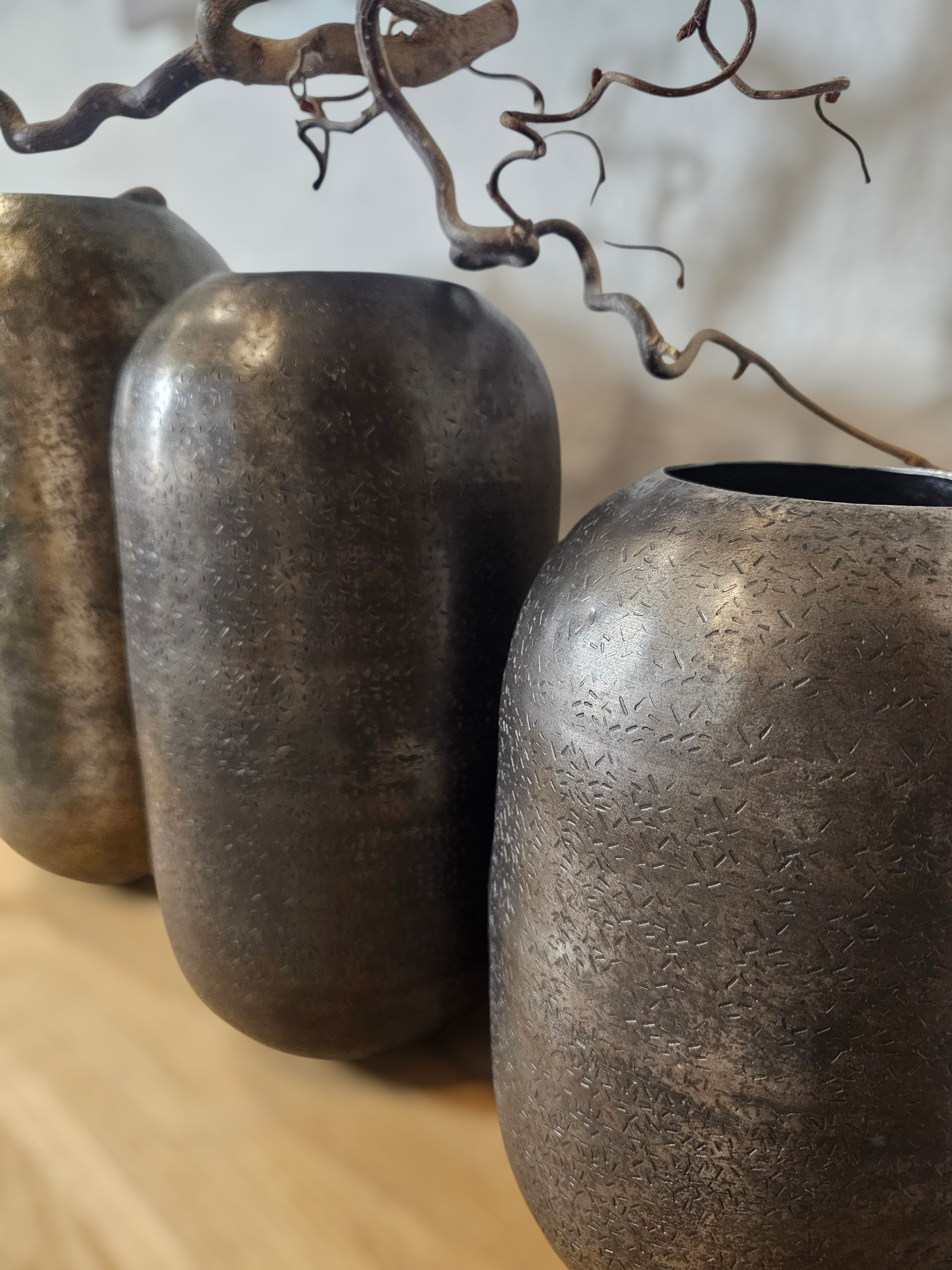 - Material und Qualität: Die Vase besteht aus robustem Aluminium, was eine lange Haltbarkeit gewährleistet und gleichzeitig ein raffiniertes, hochwertiges Erscheinungsbild bietet.