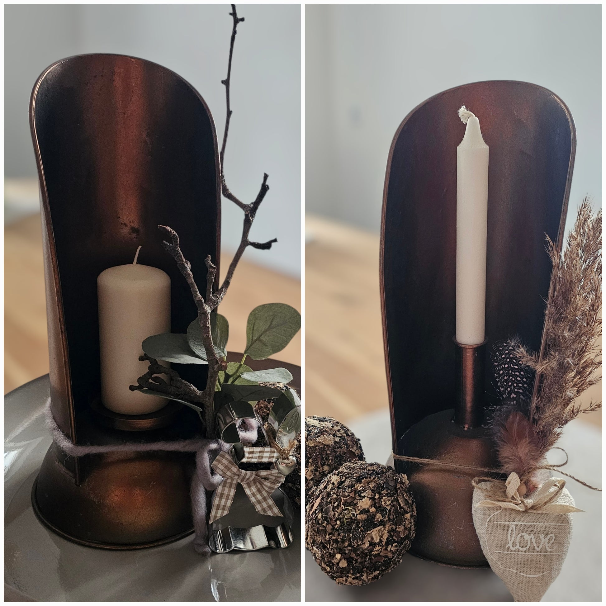 XXL Kerzenleuchter im Industrial Vintage Design, bronzefarben mit antikfinish (Dellen, Kratzer oder ähnliches sind so gewünscht und stellen keinen Reklamationsgrund da.